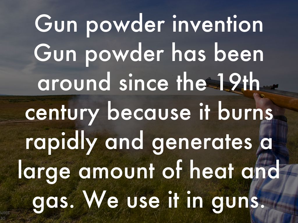 Gun powder invention Gun powder has been around since the 19th century because it burns rapidly and generates a large amount of heat and gas. We use it in guns today.