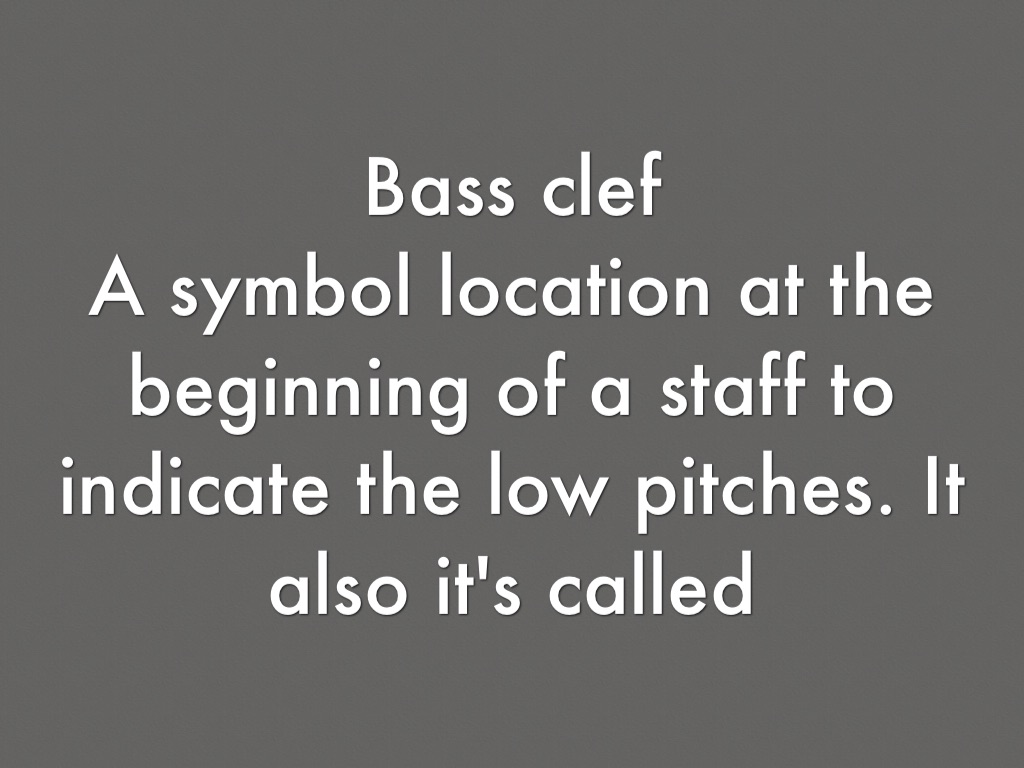 A symbol location at the beginning of a staff to indicate the low pitches. It also it's called
