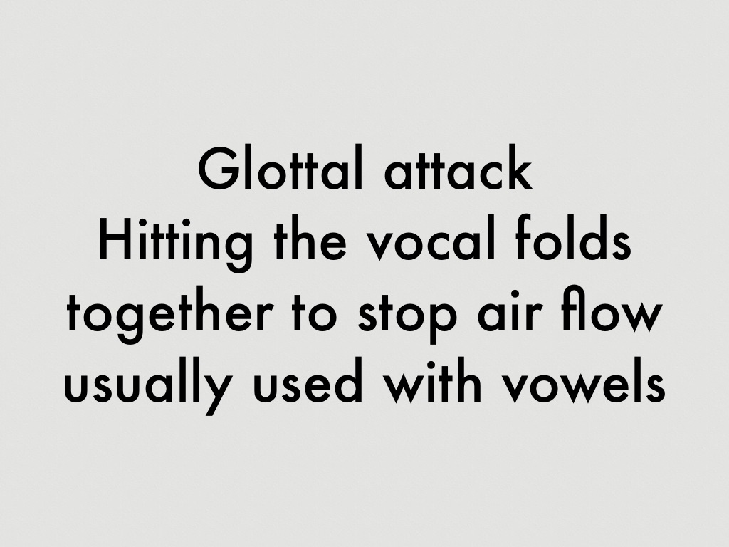 Hitting the vocal folds together to stop air flow usually used with vowels