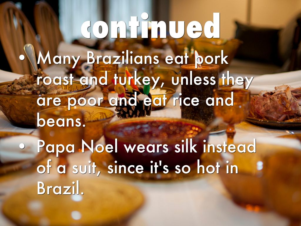 Brazilians eat foods such as turkey and pork roast, but poorer families must settle for rice and beans.