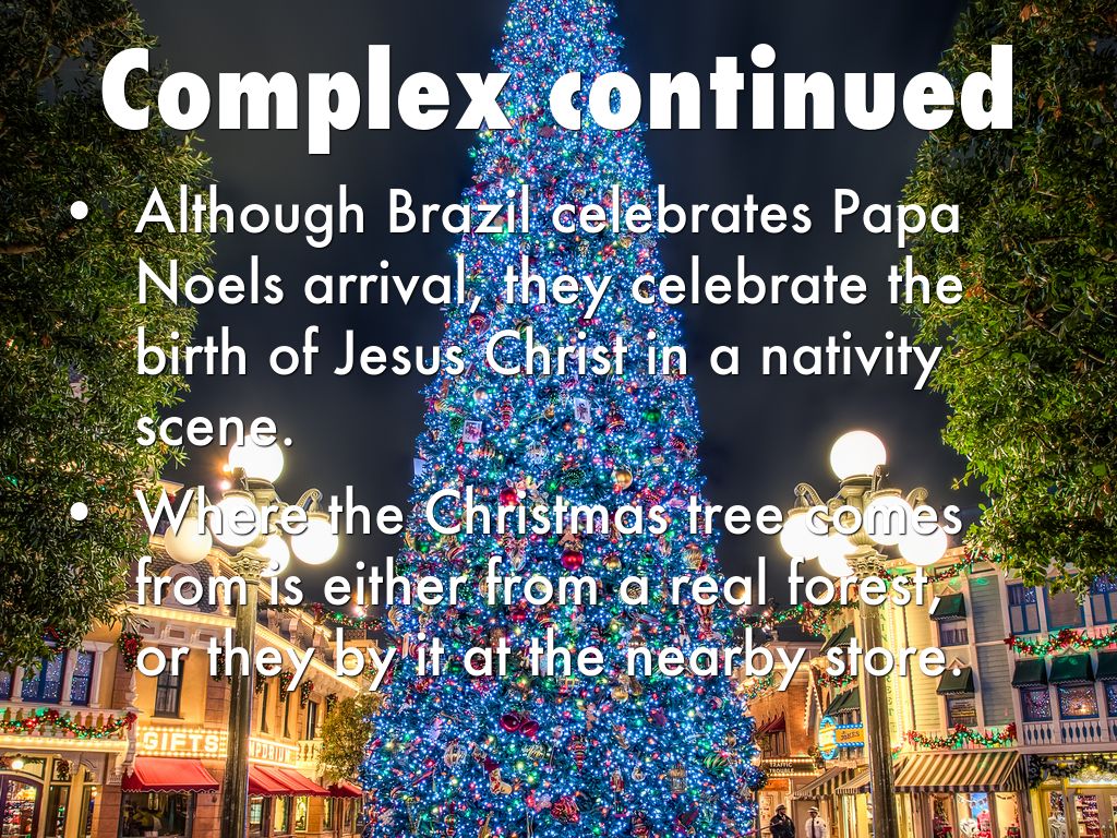 Although Brazil celebrates Papa Noels arrival, they celebrate the birth of Jesus Christ in a nativity scene.
