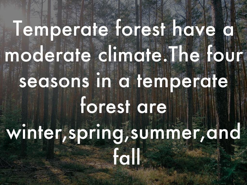 Temperate forest have a moderate climate.The four seasons in a temperate forest are winter,spring,summer,and fall