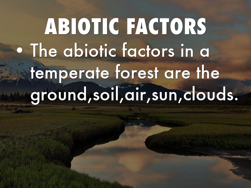The abiotic factors in a temperate forest are the ground,soil,air,sun,clouds.