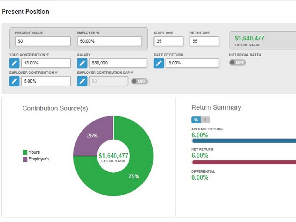 Employer contribution % compared with what you contribute...if over this match, put money elsewhere