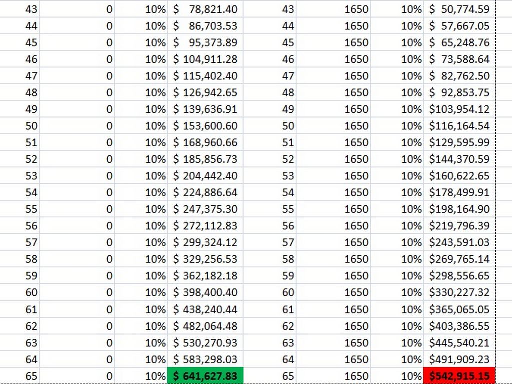 Who has more $ at age 65?