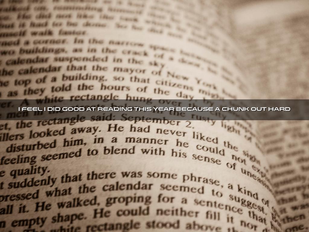 I FEEL I DID GOOD AT READING THIS YEAR BECAUSE A CHUNK OUT HARD WORDS.