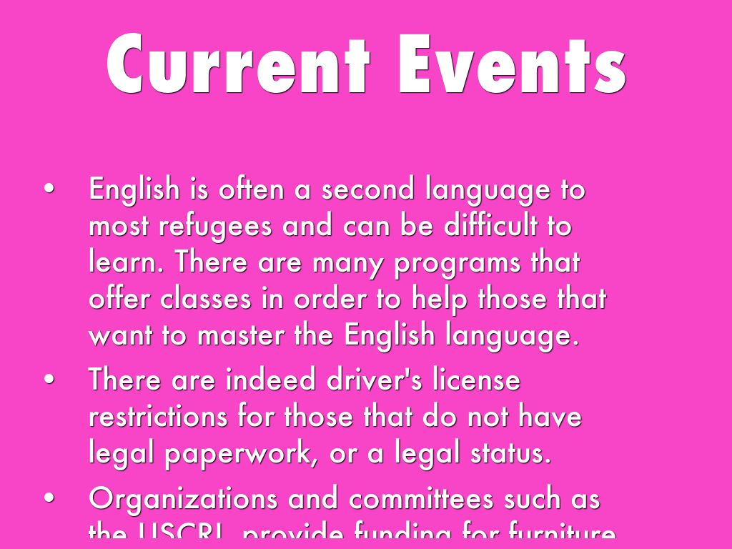 • English is often a second language to most refugees and can be difficult to learn. There are many programs that offer classes in order to help those that want to master the English language.