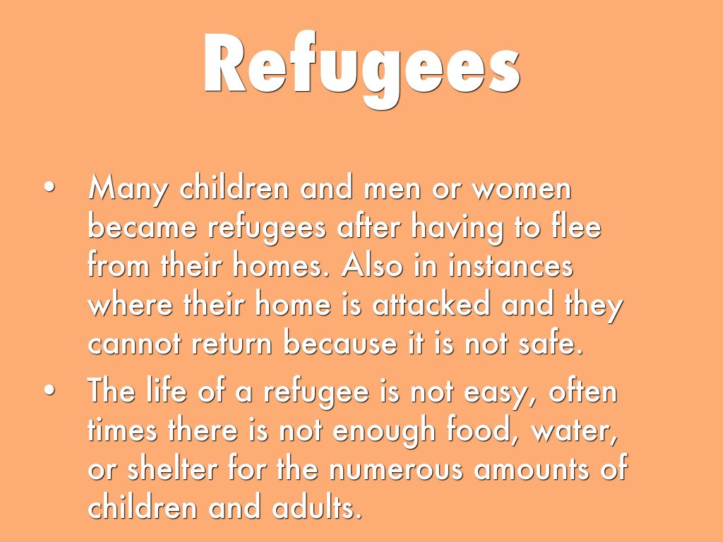 • The life of a refugee is not easy, often times there is not enough food, water, or shelter for the numerous amounts of children and adults.