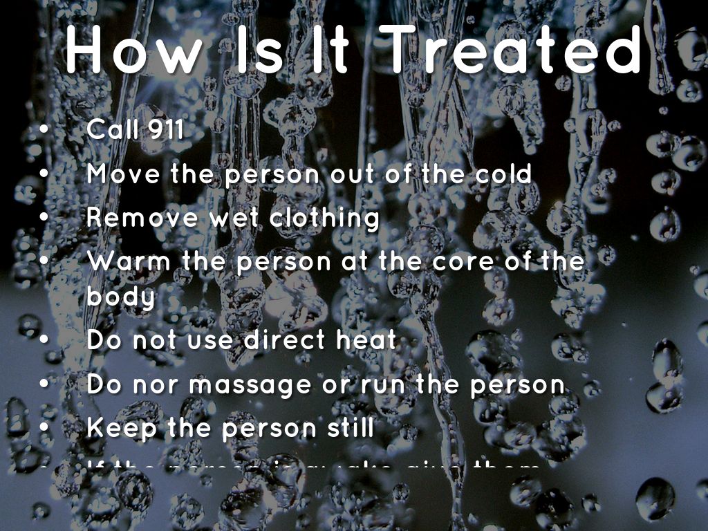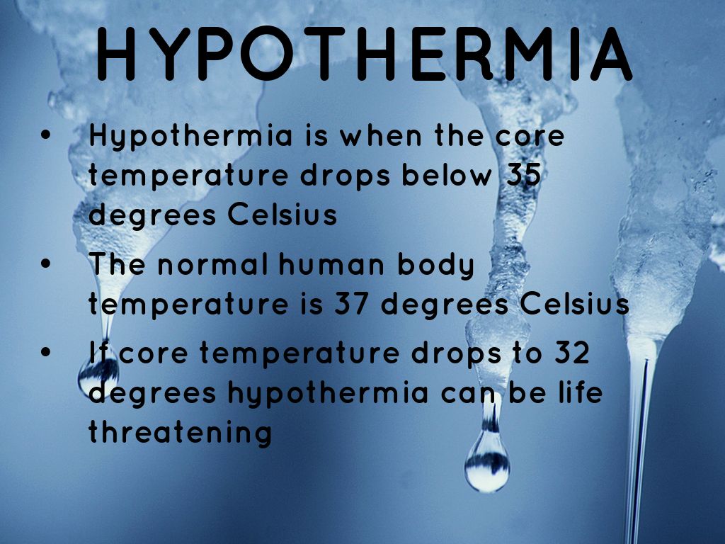 Hypothermia is when the core temperature drops below 35 degrees Celsius
