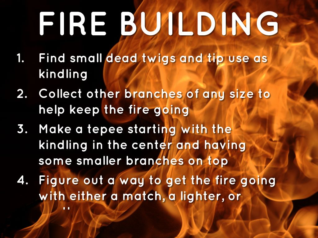 Figure out a way to get the fire going with either a match, a lighter, or another way