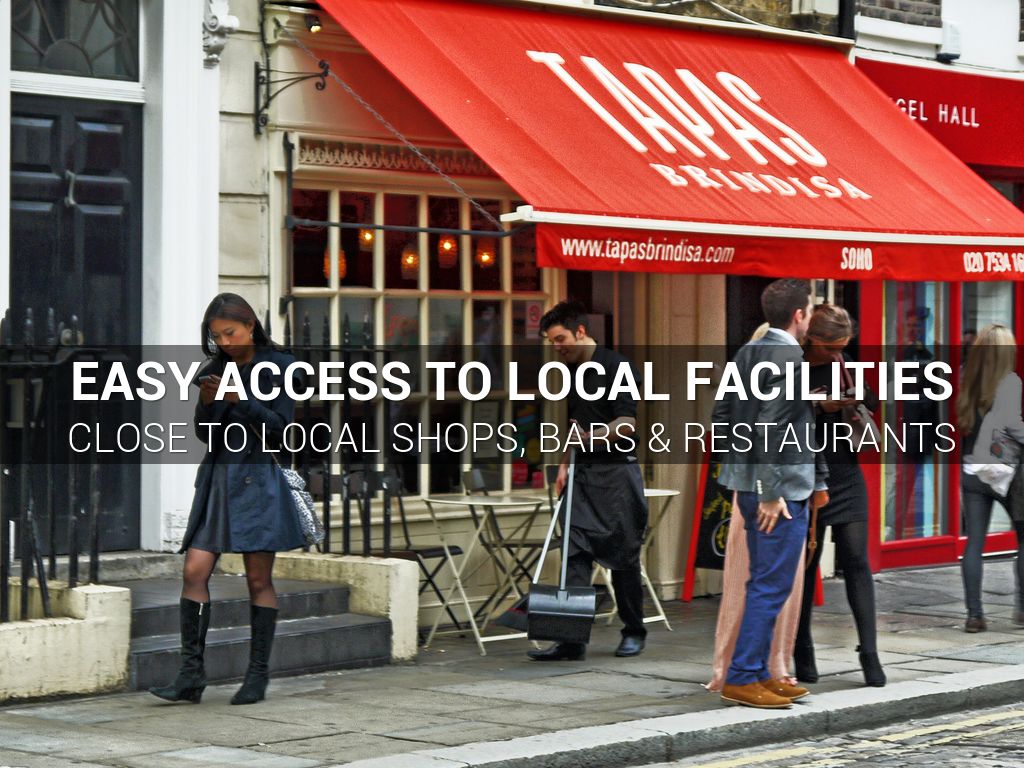 CLOSE TO LOCAL SHOPS, BARS & RESTAURANTS