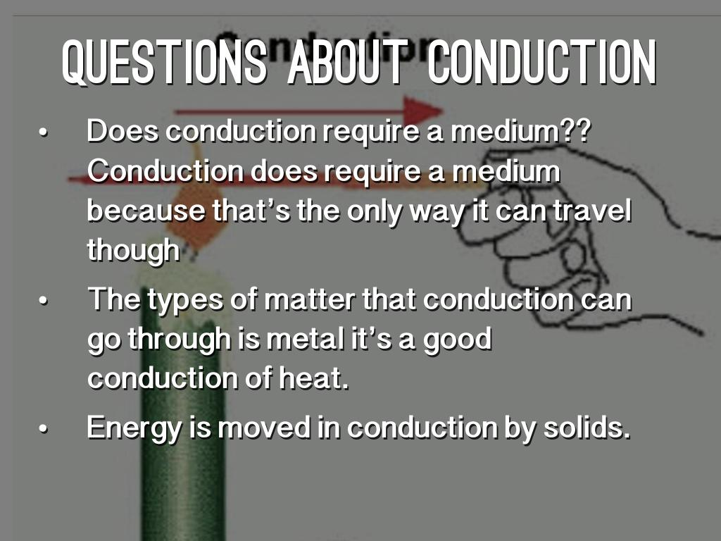 • Does conduction require a medium?? Conduction does require a medium because that’s the only way it can travel though