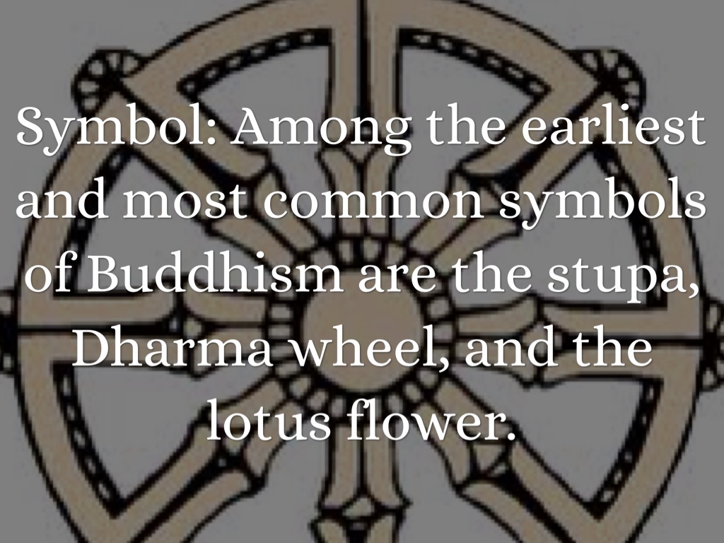 Symbol: Among the earliest and most common symbols of Buddhism are the stupa, Dharma wheel, and the lotus flower.