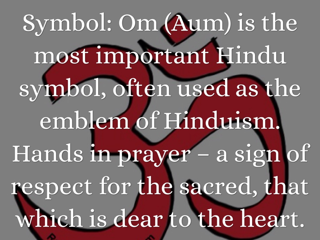 Symbol: Om (Aum) is the most important Hindu symbol, often used as the emblem of Hinduism. Hands in prayer – a sign of respect for the sacred, that which is dear to the heart.