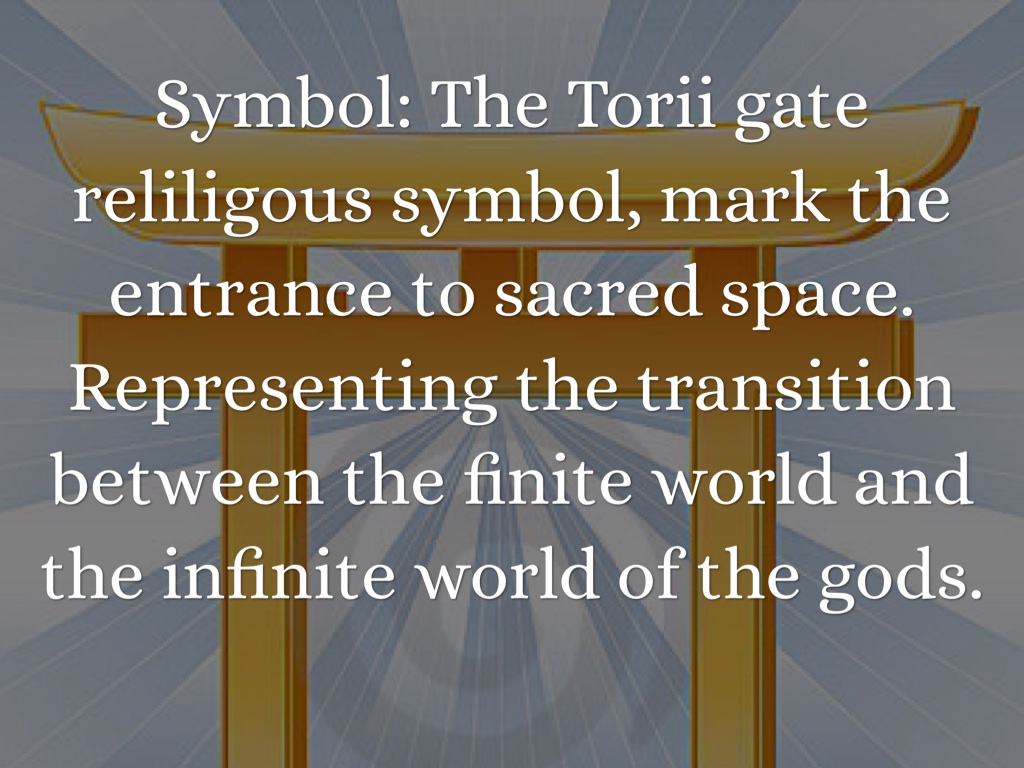 Symbol: The Torii gate reliligous symbol, mark the entrance to sacred space. Representing the transition between the finite world and the infinite world of the gods.