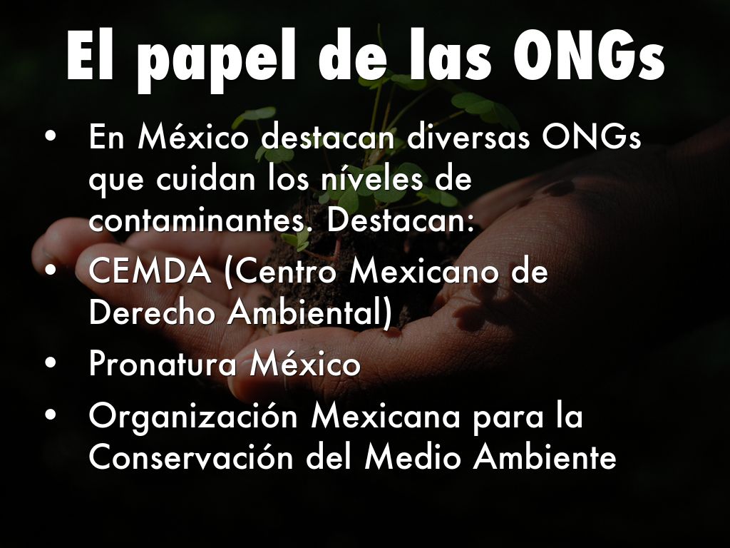 En México destacan diversas ONGs que cuidan los níveles de contaminantes. Destacan: