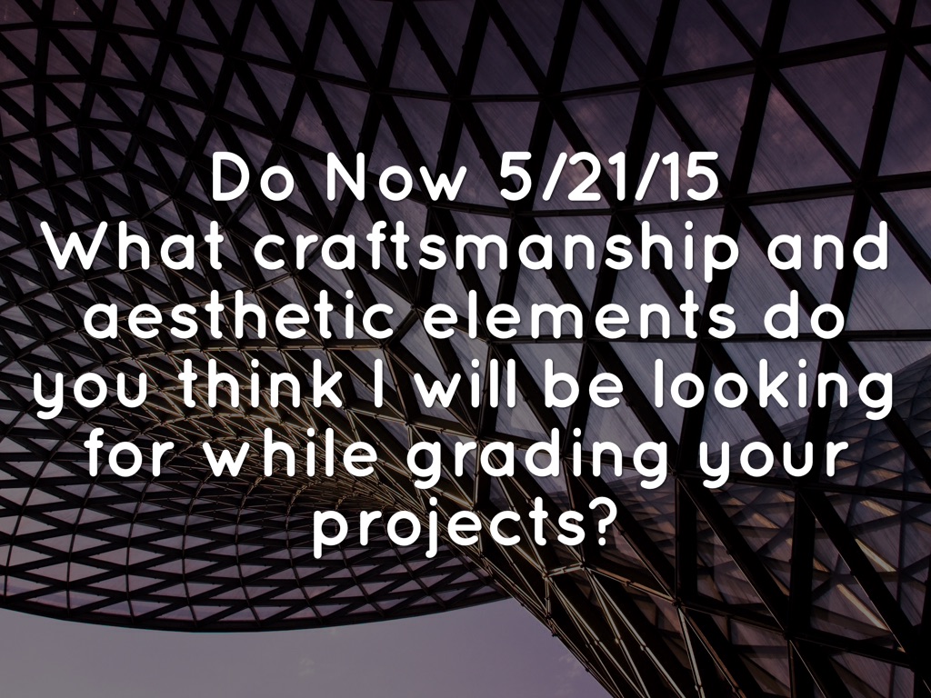 What craftsmanship and aesthetic elements do you think I will be looking for while grading your projects?