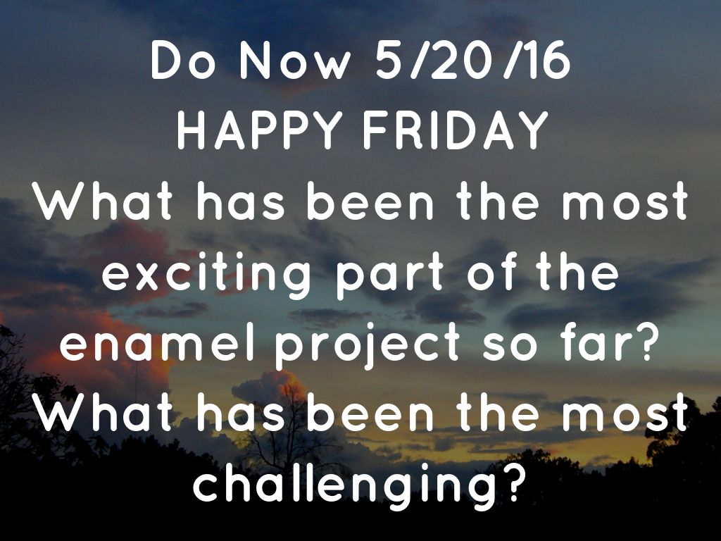 *what steps have you completed on the enamel project thus far?