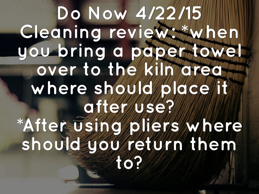 Cleaning review: *when you bring a paper towel over to the kiln area where should place it after use?