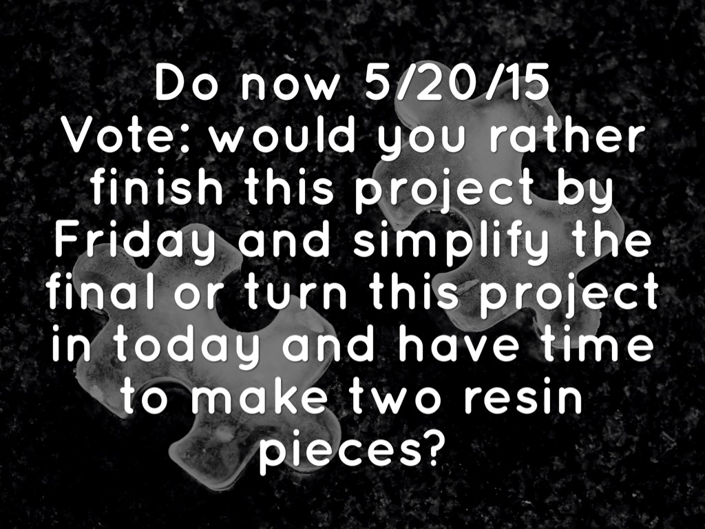 Vote: would you rather finish this project by Friday and simplify the final or turn this project in today and have time to make two resin pieces?