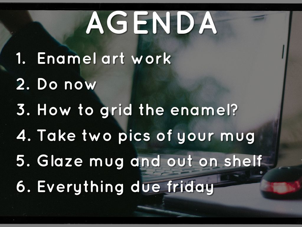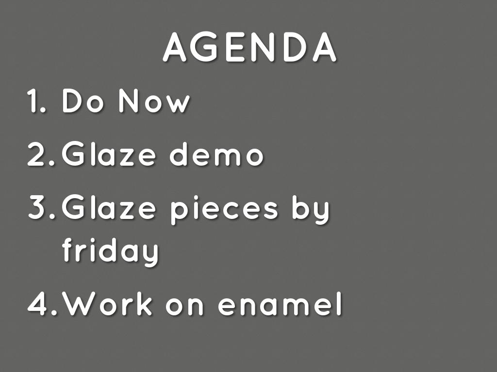 - Glaze mugs and work on enamel piece