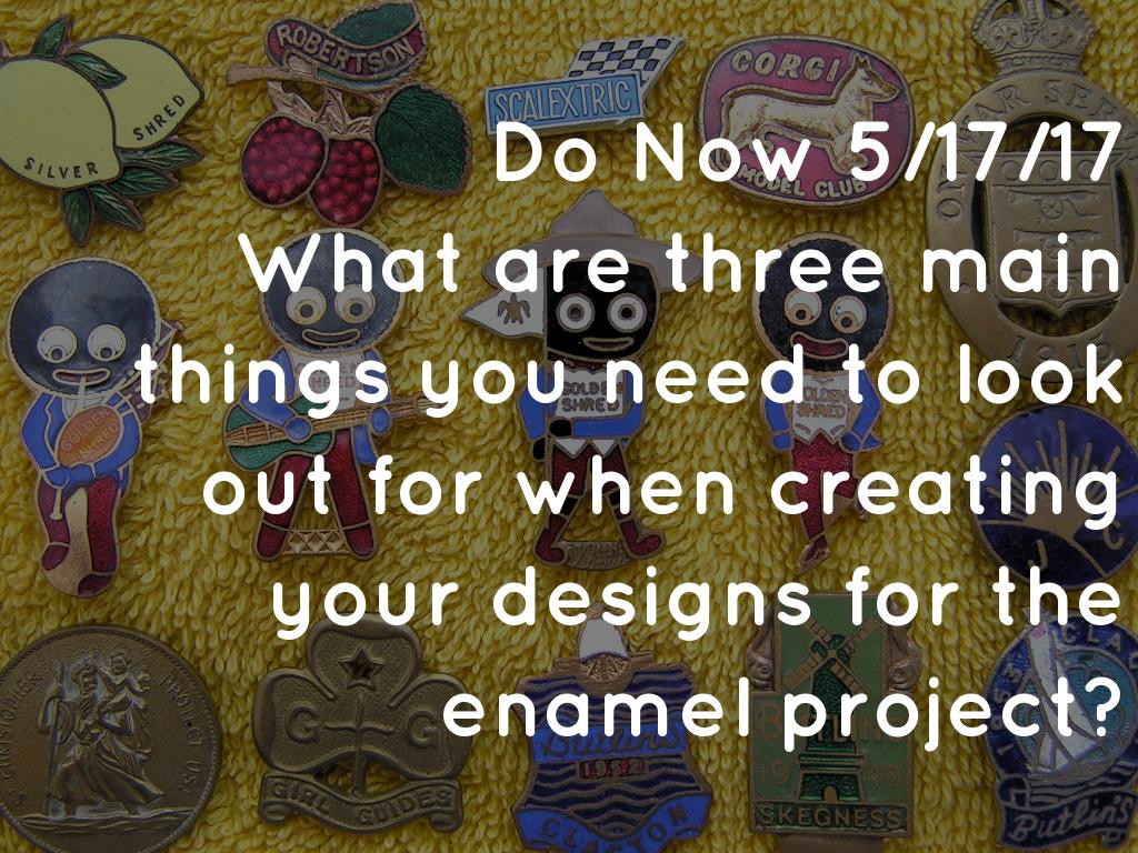 What are three main things you need to look out for when creating your designs for the enamel project?