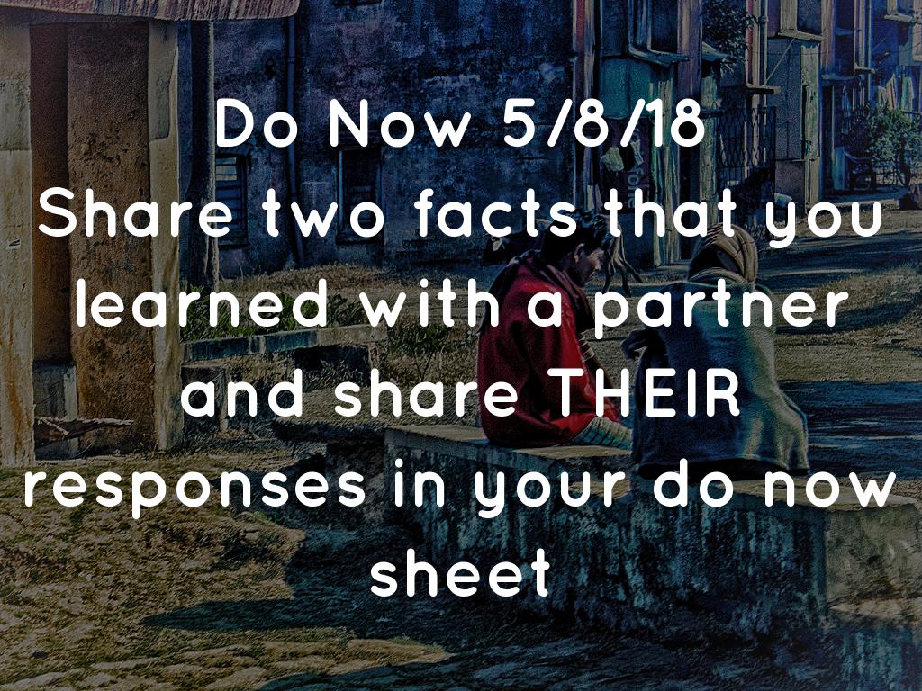 Share two facts that you learned with a partner and share THEIR responses in your do now sheet