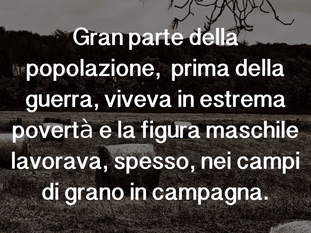 Gran parte della popolazione, prima della guerra, viveva in estrema povertà e la figura maschile lavorava, spesso, nei campi di grano in campagna.