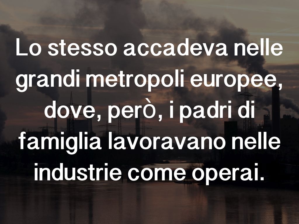 Lo stesso accadeva nelle grandi metropoli europee, dove, però, i padri di famiglia lavoravano nelle industrie come operai.