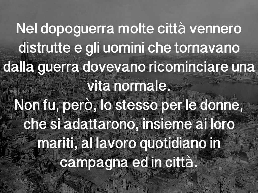 Nel dopoguerra molte città vennero distrutte e gli uomini che tornavano dalla guerra dovevano ricominciare una vita normale.