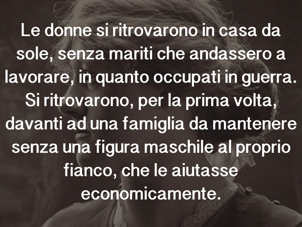 Le donne si ritrovarono in casa da sole, senza mariti che andassero a lavorare, in quanto occupati in guerra.