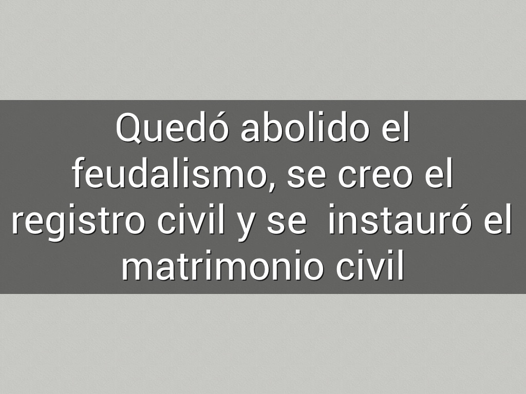 Quedó abolido el feudalismo, se creo el registro civil y se instauró el matrimonio civil