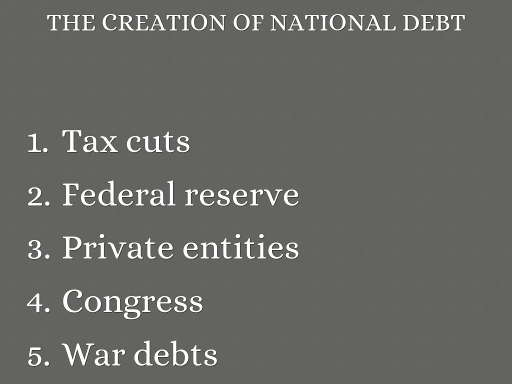 What most Americans don't know is that the federal reserve is a private entity. The main problem is that the government loans money to the federal Reserve and to pay back that money they print out more. Thus, the money is payed back, but the value of the dollar decreases. Mathematically, they are not paying us back. Therefore, we must destroy the federal reserve.