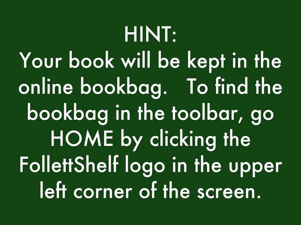 Your book will be kept in the online bookbag. To find the bookbag in the toolbar, go HOME by clicking the FollettShelf logo in the upper left corner of the screen.