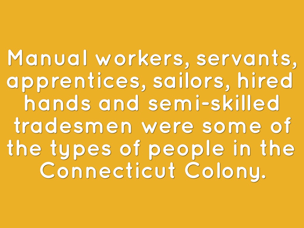 Manual workers, servants, apprentices, sailors, hired hands and semi-skilled tradesmen were some of the types of people in the Connecticut Colony.