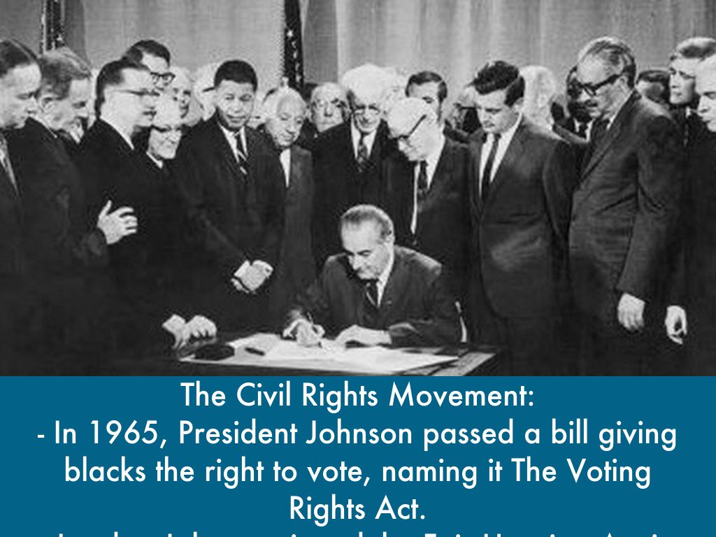 - In 1965, President Johnson passed a bill giving blacks the right to vote, naming it The Voting Rights Act.