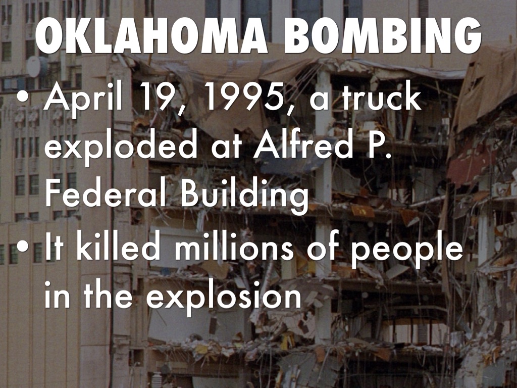 • April 19, 1995, a truck exploded at Alfred P. Federal Building
