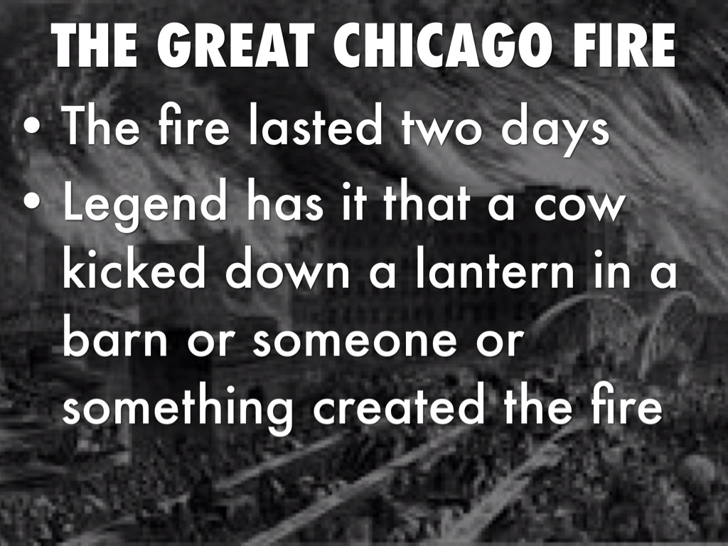• Legend has it that a cow kicked down a lantern in a barn or someone or something created the fire