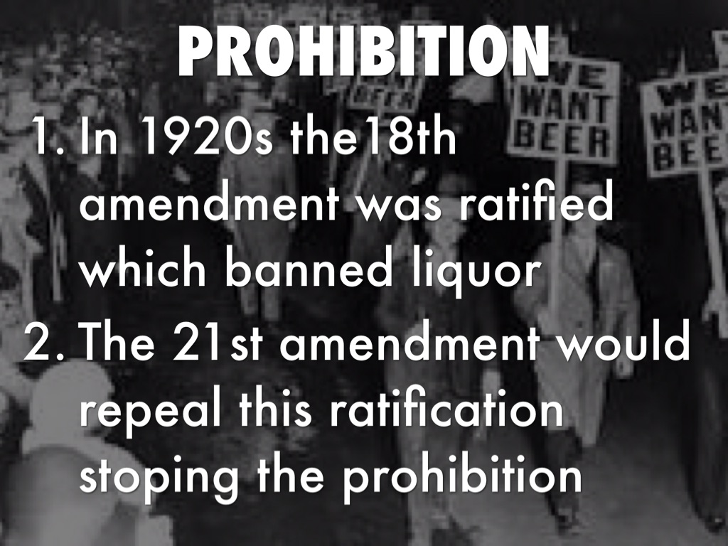 • The 21st amendment would repeal this ratification stoping the prohibition