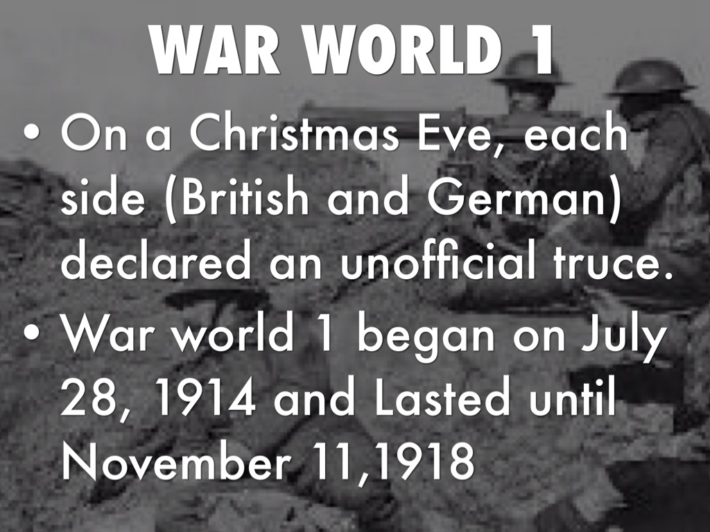 • On a Christmas Eve, each side (British and German) declared an unofficial truce.