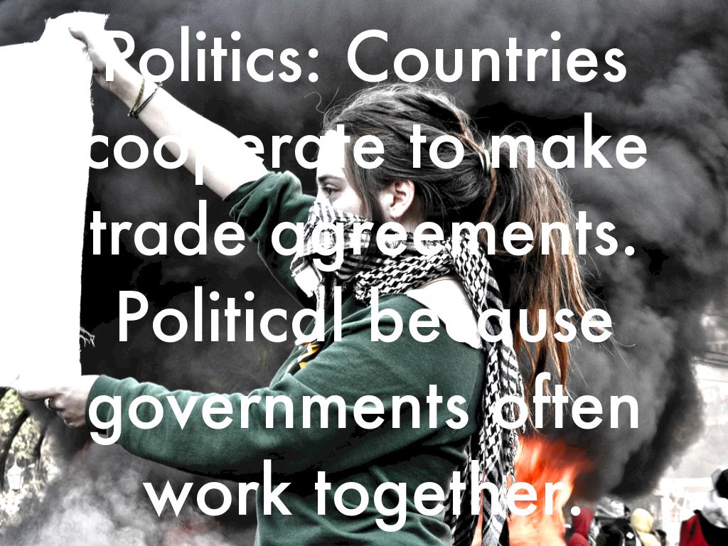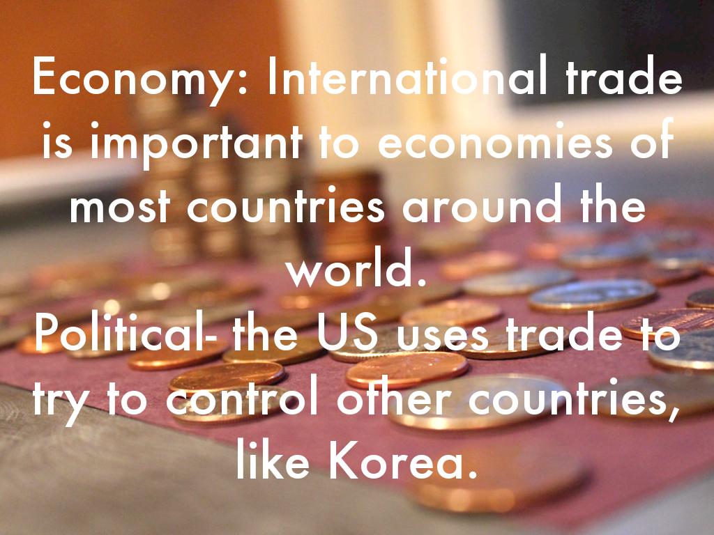Economy: International trade is important to economies of most countries around the world. Political- the US uses trade to try to control other countries, like Korea.