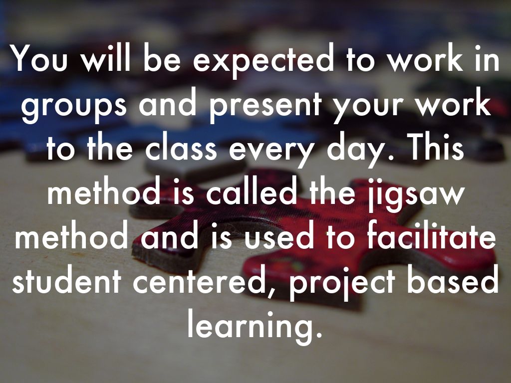 You will be expected to work in groups and present your work to the class every day. This method is called the jigsaw method and is used to facilitate student centered, project based learning.
