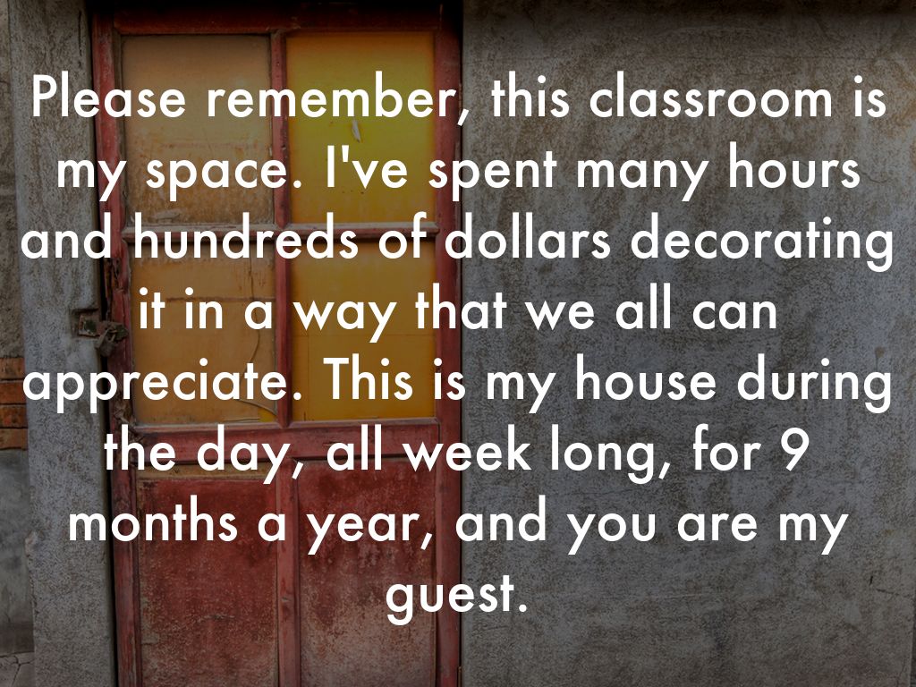 Please remember, this classroom is my space. I've spent many hours and hundreds of dollars decorating it in a way that we all can appreciate. This is my house during the day, all week long, for 9 months a year, and you are my guest.