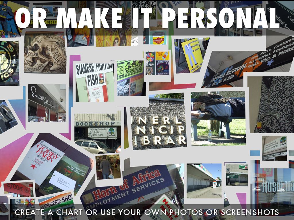 CREATE A CHART OR USE YOUR OWN PHOTOS OR SCREENSHOTS