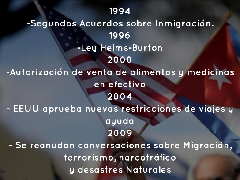 -Cuba sale oficialmente de la lista de países patrocinadores del terrorismo, restablecimiento de sus relaciones diplomáticas y la apertura de embajadas.