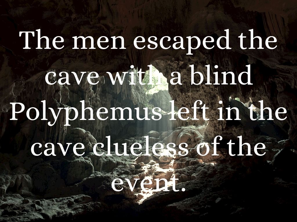 The men escaped the cave with a blind Polyphemus left in the cave clueless of the event.