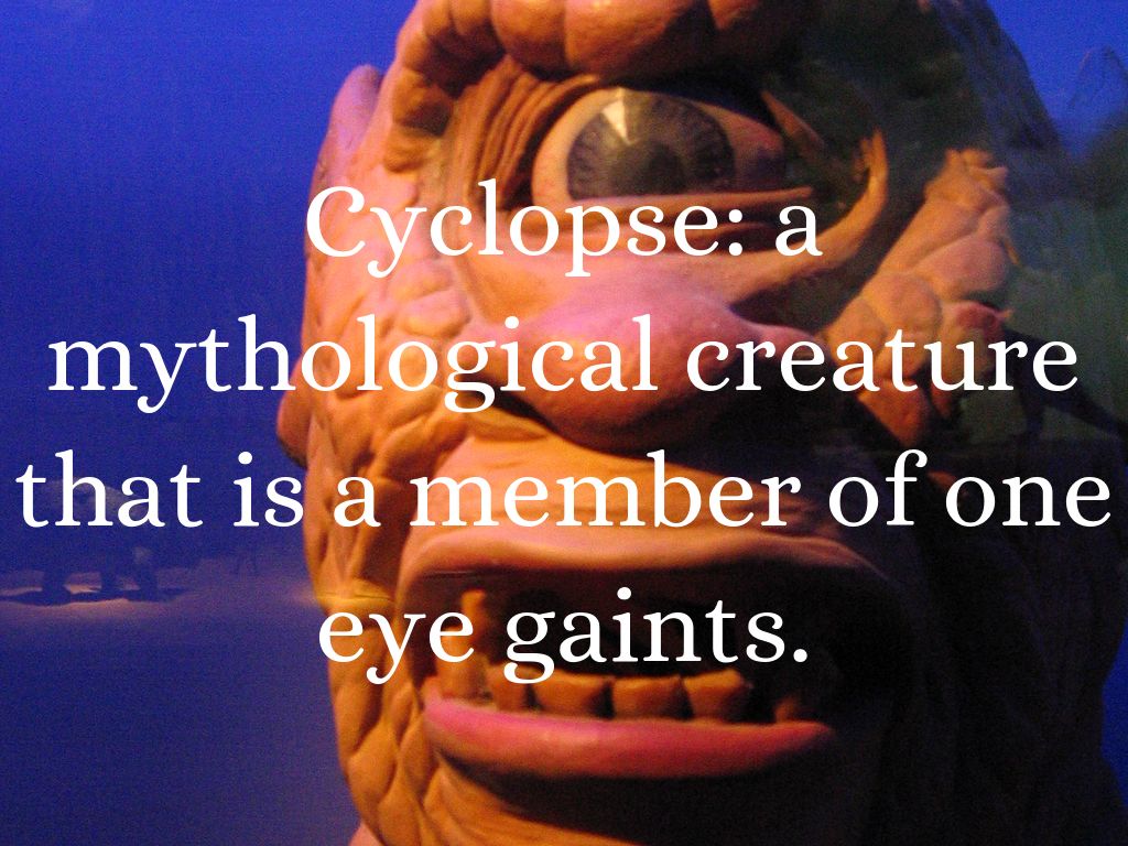Cyclopse: a mythological creature that is a member of one eye gaints.