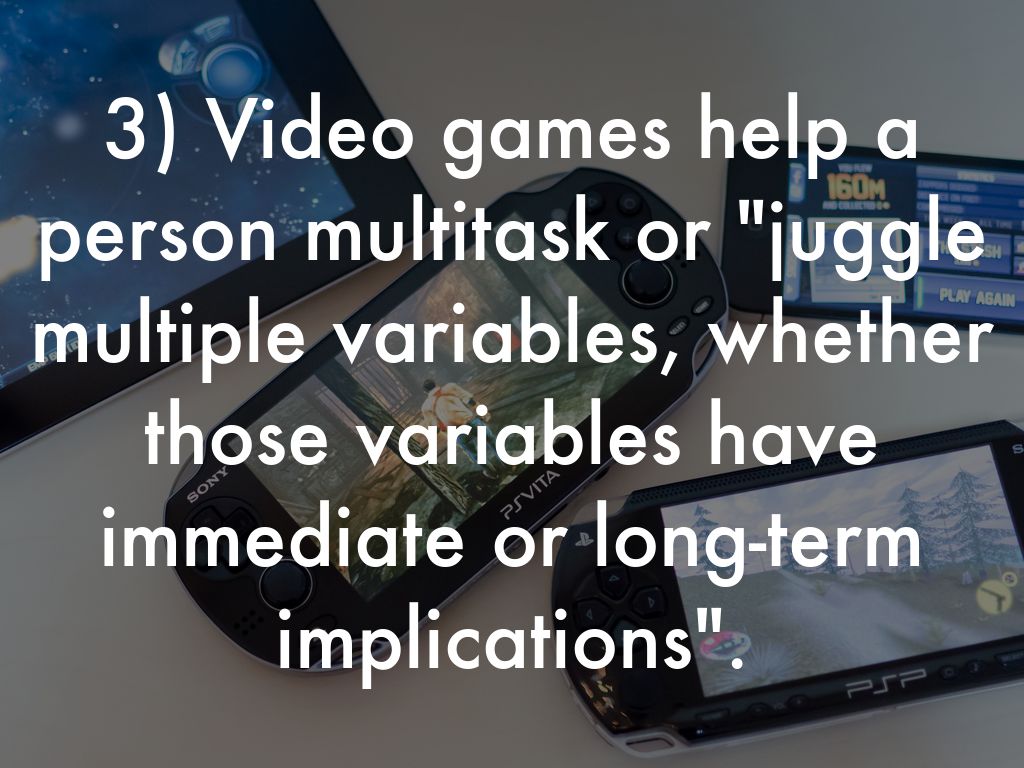 3) Video games help a person multitask or "juggle multiple variables, whether those variables have immediate or long-term implications".