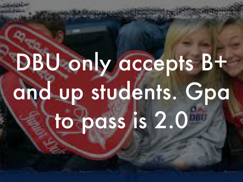 DBU only accepts B+ and up students. Gpa to pass is 2.0