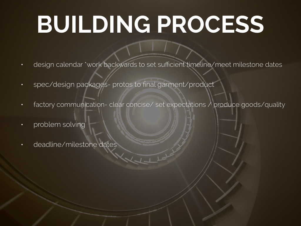 spec/design packages- protos to final garment/product